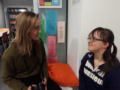 En el segundo curso, que es cuando se hacen las prácticas de empresa, mis profesores y mi familia me apoyaron para que solicitara la beca. Era un reto para todos, porque soy una chica con Síndrome de Down.