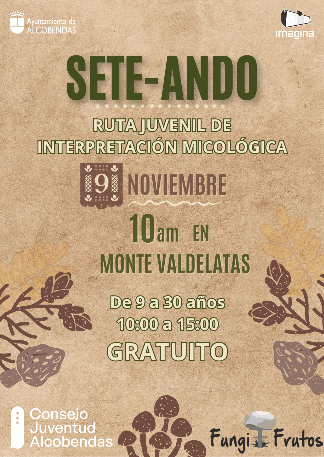 En SETE-ANDO, una ruta juvenil de interpretación micológica, aprenderás a identificar distintas especies de hongos, conocer su importancia ecológica y disfrutar de una mañana de naturaleza, aprendizaje y diversión.