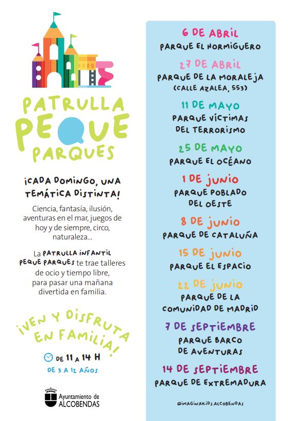 El Ayuntamiento de Alcobendas a través de la Concejalía de Juventud, Infancia y Adolescencia, programada una oferta matinal y divertida los domingos por la mañana en los distintos parques de la ciudad con el objetivo de ofrecer una programación de actividades infantil y familiar gratuitas.